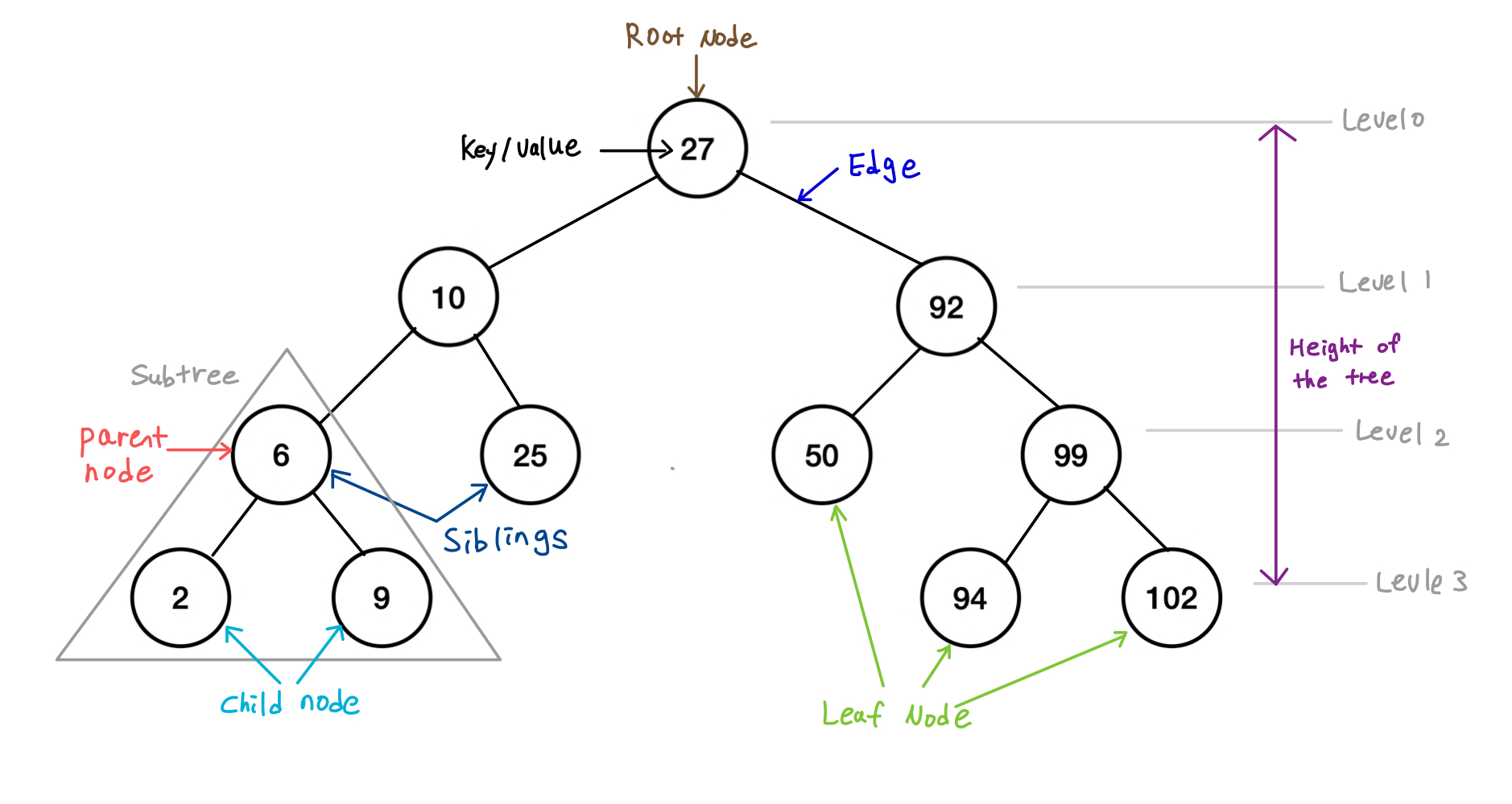 level(레벨): root node ~ 해당 node까지 필요한 edge(간선) 수의 최솟값