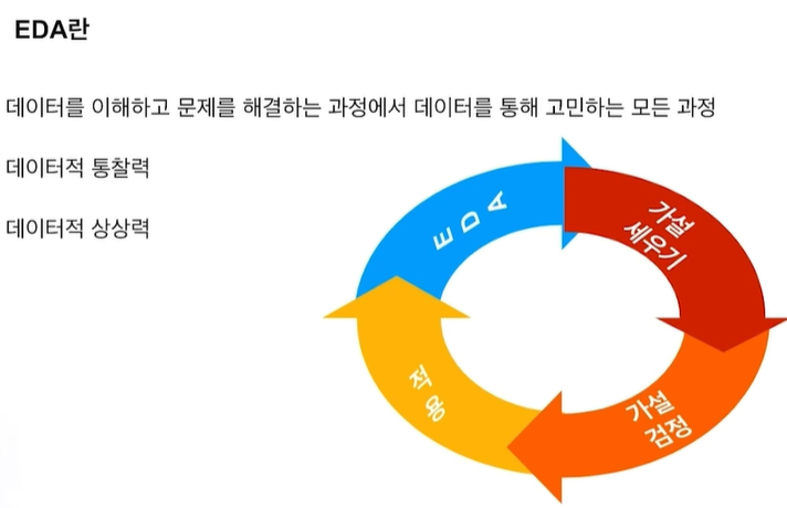 이런 과정이 반복: Data에 대한 가설 혹은 의문 -> 시각화, 통계량 혹은 모델링을 통한 가설 검정 -> 결론을 통해 다시 새로운 가설 혹은 문제 해결