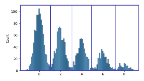 이런식으로 연속형 데이터 다봉분포 데이터일때 사이사이가 유의미하지 않는 구간이 있다.