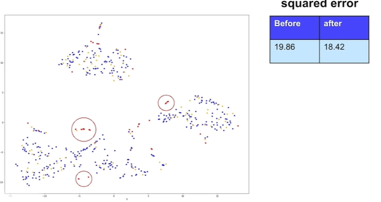 데이터를 차원축소해서 2차원으로 그린 그래프이다.