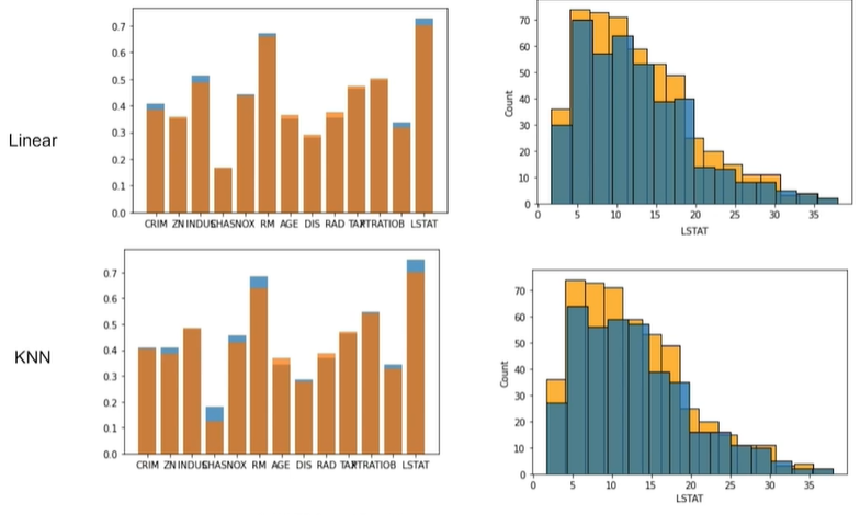 기존 2~4방법보다 회귀나 KNN방법이 상관관계를 상대적으로 잘 보존하고 있다.