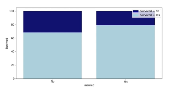 기혼 여성 생존률↑ -> 기혼 여성은 아이가 있으므로 구명보트를 먼저 탈 기회를 얻지 않았을까?