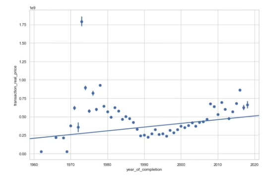 70~80년대에 유달리 높은 아파트 가격(이상치)? -> 재건축(재개발) 이유로 높아짐