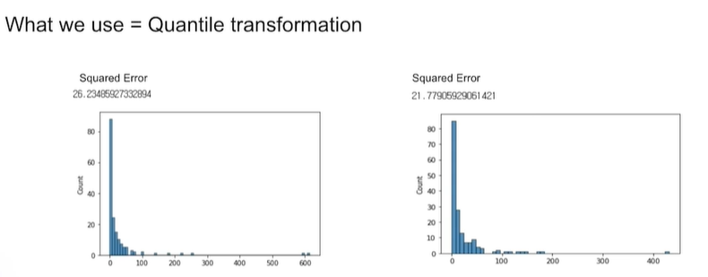 Quantile transformation은 어떤 분포가 들어와도 uniform 혹은 정규분포로 만들어줌