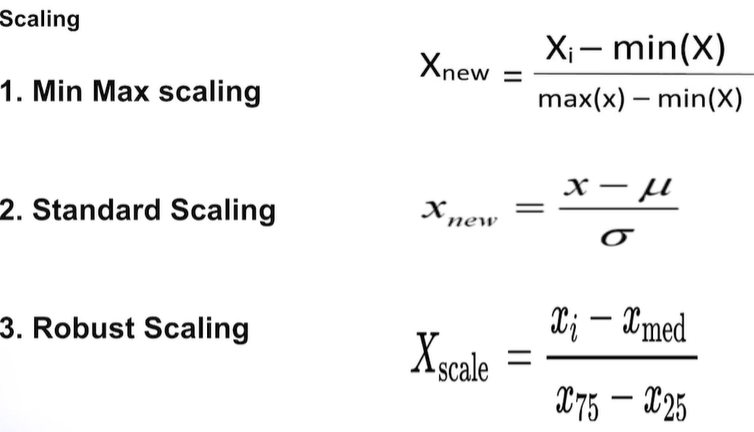 ML에 데이터 입력하기위해 처리하는 과정. (EDA에따라, 모델(선형,트리,딥러닝 등), 목적에 따라 달라짐)