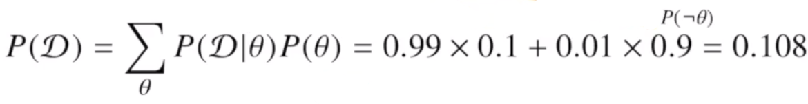 여기서 세타는 실제 발병률로 정의(관찰 불가), D는 검진 양성판정에 대한 것(테스트 결과, 관찰 가능)