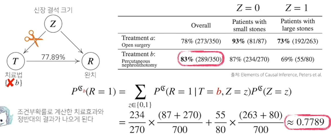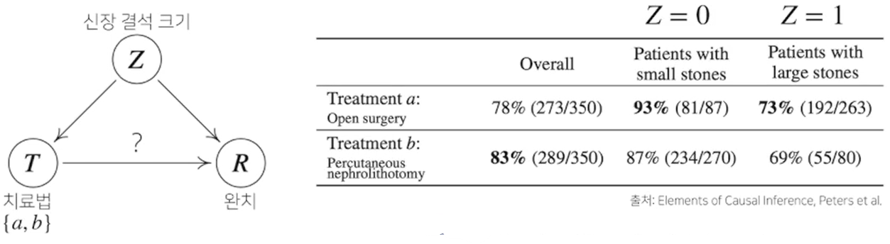인과관계 추론 예제: 치료법 a와 b 중 어느 것이 더 나은가?