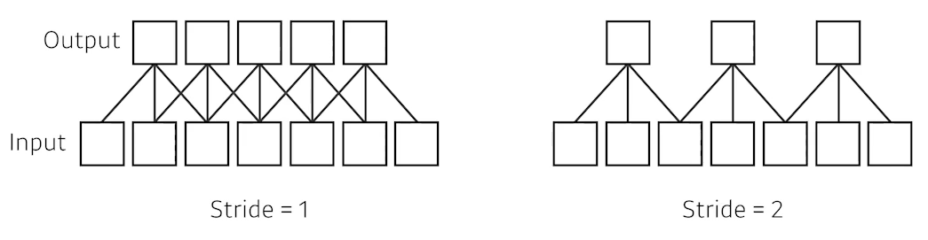 Stride: convolution filter(Kernel)를 얼마나 자주 찍을 지에 대한 것.