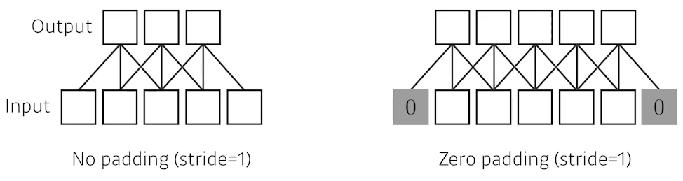 padding: Boundary 정보로 인해 convolution operation이 완전하지 못할 때 가장자리에 덧대주는 역할