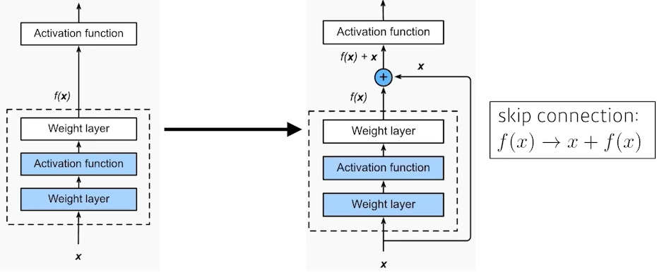 f(x)가 학습하는 것은 x(residual)만 학습하도록 유도함