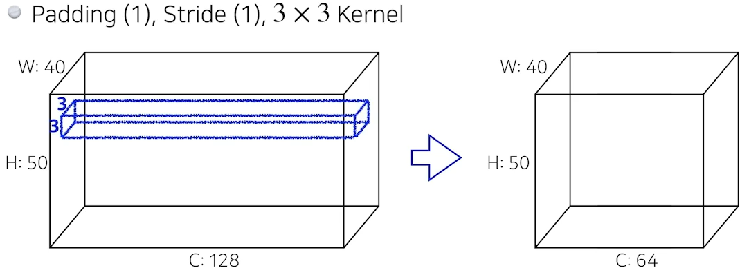 기존 것(왼쪽): 3x3 filter 사용