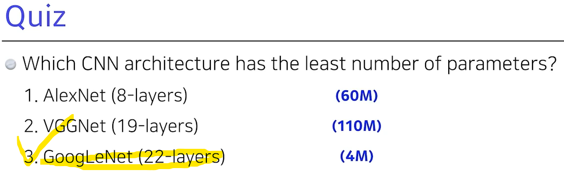 -> 요즘 CNN 발전 방향: convolution layers은 깊고 많아지지만 파라미터 숫자는 가능한 줄이고자 함