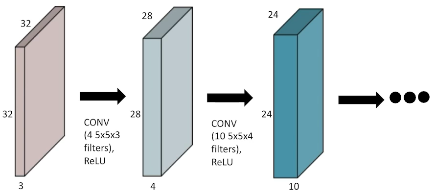 이러한 convolutions(CONV)들은 stack이 될 수 있다.