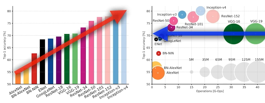 파라미터 개수 많으면 -> 학습이 어려움 -> generalization performance 저하(학습잘해도 실질 deploy 성능 별로임)