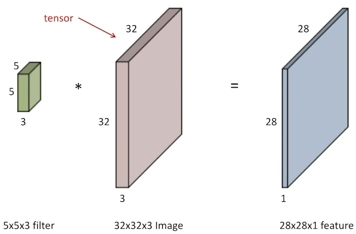 보통 임의의 image를 convolution한다는 의미에는 filter와 image의 depth(예제에서는 3이 해당됨) 크기가 같음을 전제함