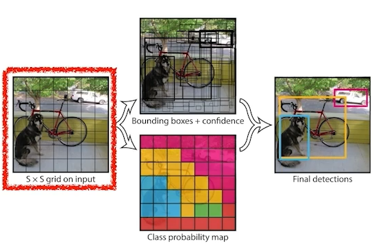 1) 이미지가 주어지면, YOLO는 SxS grid로 이미지를 나눈다.