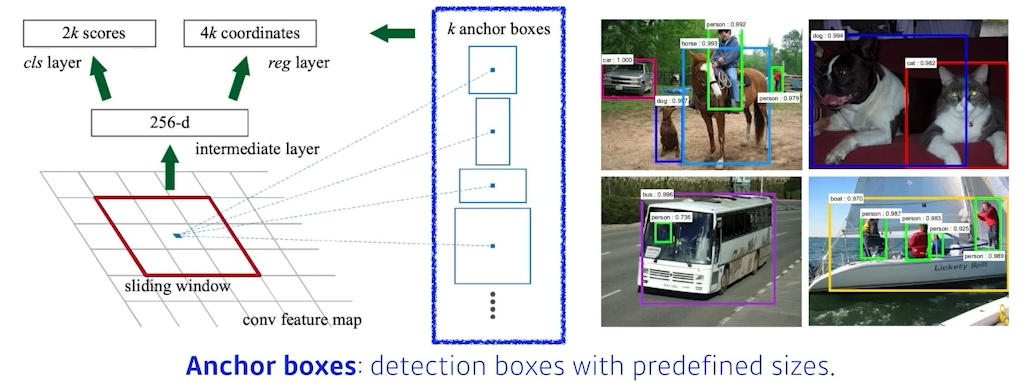 Anchor boxes: 미리 정해놓은 bounding box 크기