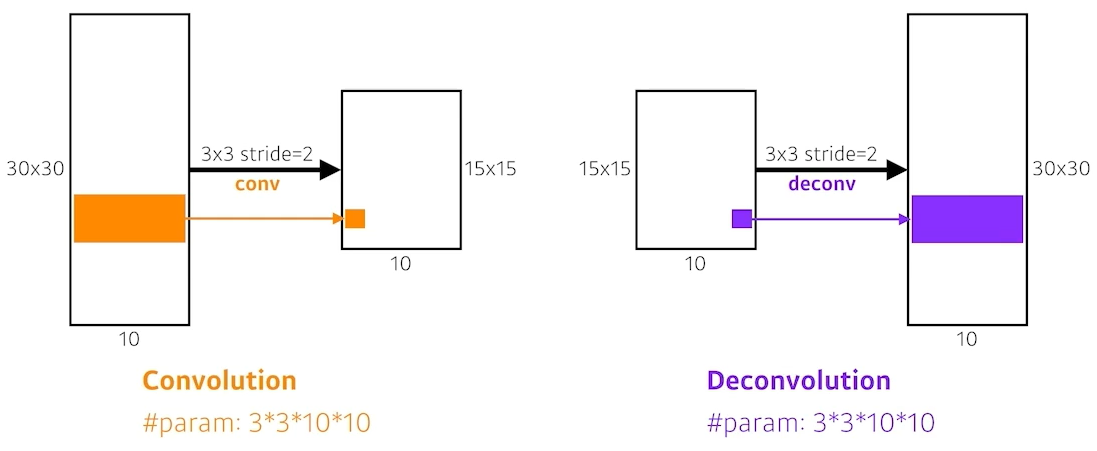 cf) 엄밀하게 따지면 Convolution의 역 연산이라는 것은 존재하지 않는다. Convolution 자체가 여러개의 부분을 합쳐서 하나로 만든 것인데 이걸 다시 나누는 경우의 수는 매우 많기 때문이다. 2+8 = 10을 만들었다고해서 10을 만들때 무슨 숫자를 더해서 만들었는지 다시 유추하는 것은 불가능하다.