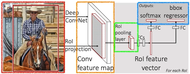 Fast R-CNN: SPPNet과 비슷하지만 뒤에 ROi feature vector를 통해서 output을 만든다는게 큰 차이점