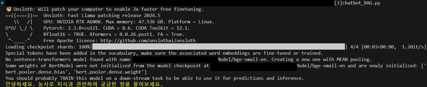 ○ 실행 방법: [3]chatbot_RAG.py을 터미널에서 실행 후 노란색 지시문에 따라서 원하는 내용을 수행한다.