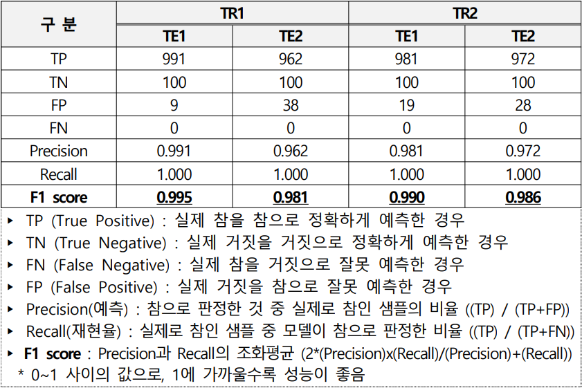 -> TR1과 TR2가 1000명의 사람에 대해 안전모 착용여부를 정확하게 감지하는지 측정