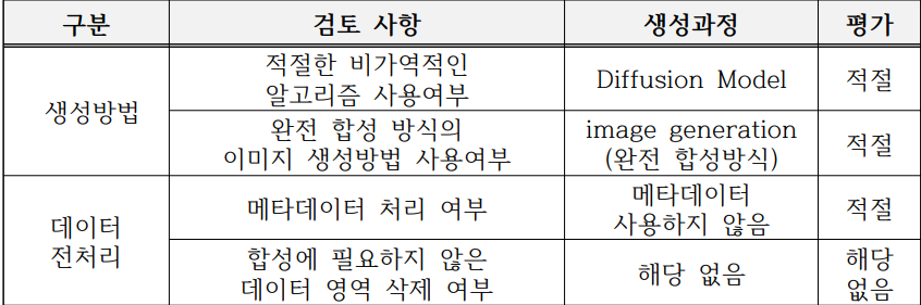 모델 파라미터 조정을 통해 원본 이미지 형태를 유지하지 않도록 하여 생성하였으므로 개인 식별 정보 불포함