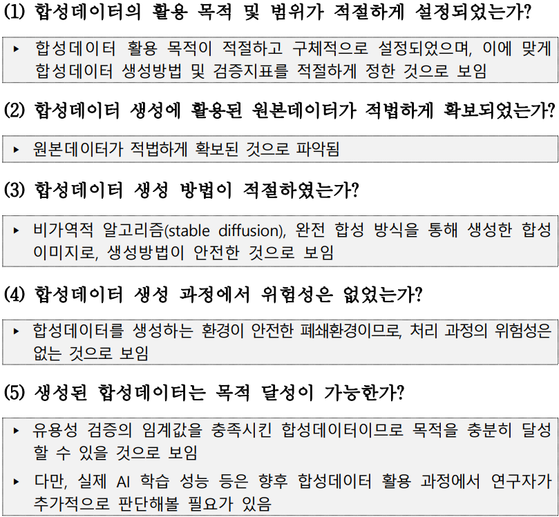 * 만약 목표한 데이터 수량을 확보하지 못한 경우 재생성 여부 결정하고 재생성, 재검증 과정 반복 수행