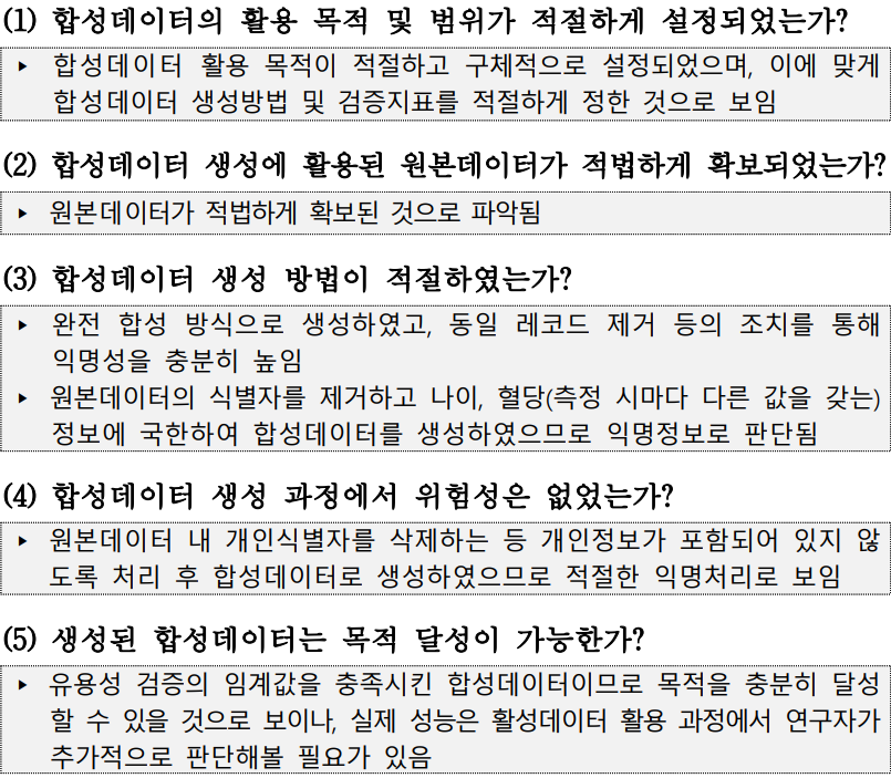 객관적 검증을 위해 외부전문가를 통해 적정성 심의를 받음(외부전문가 6인; 법률1인, 데이터 산업 4인, 정보보호 1인)