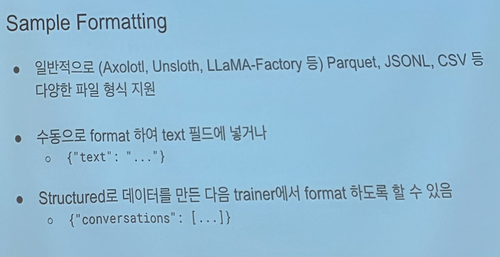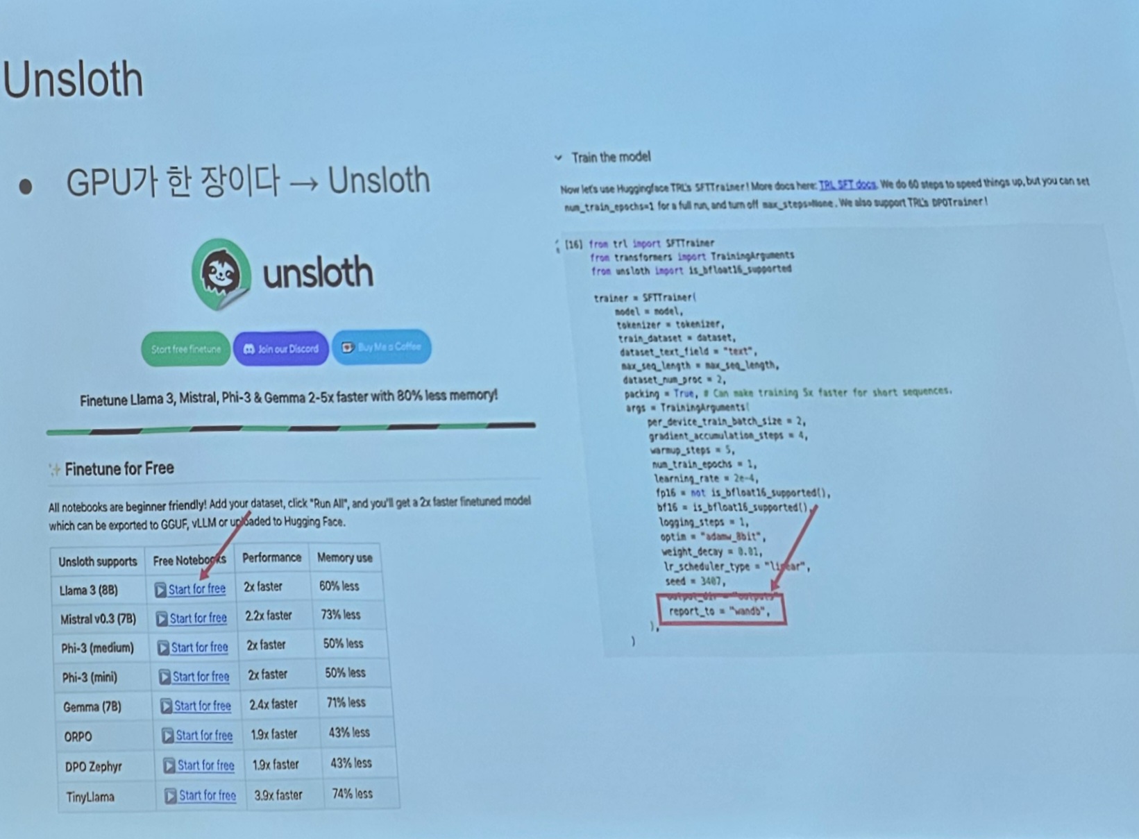 Unsloth을 사용한 예시를 많이 보여주는데 내가 쓰던거라 반갑고 뿌듯한 느낌이 들었다.