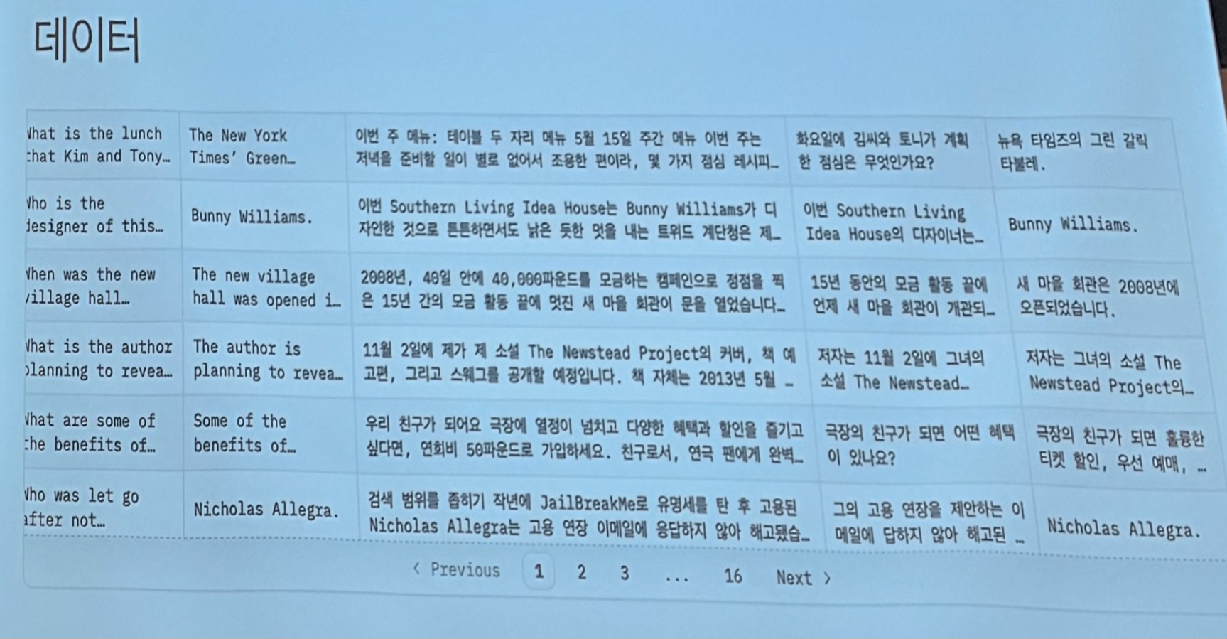 사용한 데이터 일부도 보여주고 (영어-한국어 번역)