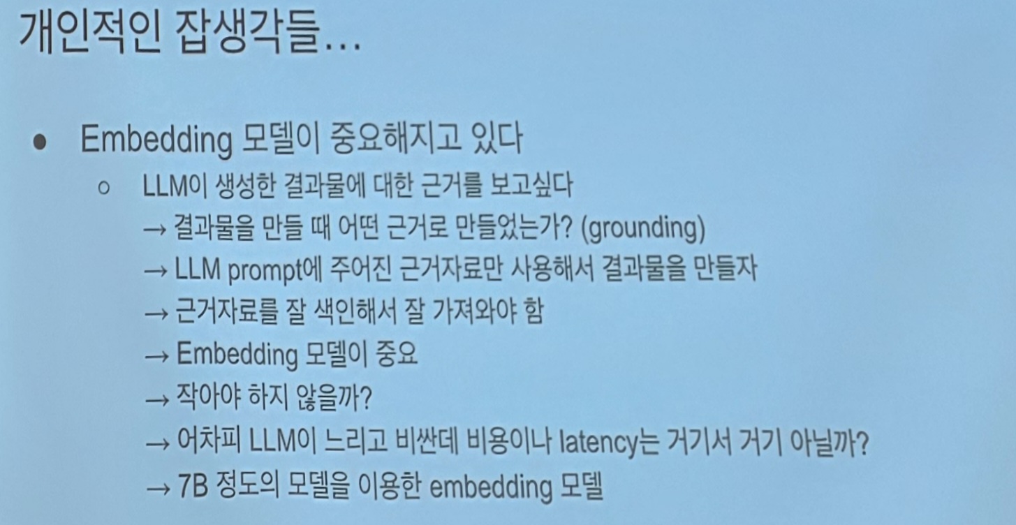 임베딩모델이 예전에는 가볍게만 나왔는데 요즘은 굳이...? 라서 크게크게 나오는 경향성이 있다고 함