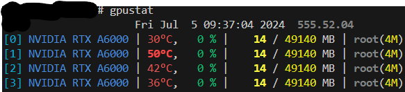 관리자계정으로 pip install gpustat 설치하고 gpustat을 실행하면..