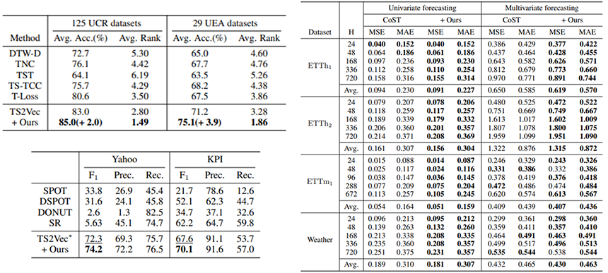 시계열 분류, 이상감지, 예측 등 다양한 Downstream Task에서 우수한 성능