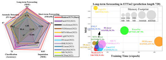 ModernTCN은 시계열 예측 외 감지, 분류, 결측치 복원 등 다양한 시계열 문제에서 좋은 성능