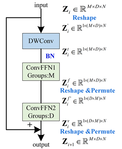Convolution 기반 구성 -> Transformer 기반 예측 모델들에 비해 빠른 학습 속도, 적은 메모리 사용량