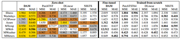 Cross-Domain 학습 능력을 지님. Cross-Domain Learning 바탕으로 Zero-shot Forecasting 실험에서 기존 모델 능가