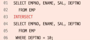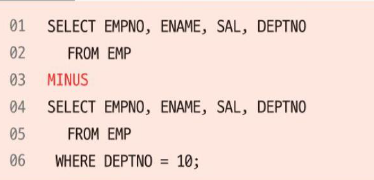 MINUS: 차집합 INTESECT: 교집합