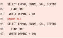 UNION: 중복제거 합집합 <-> 중복 허욜 합집합