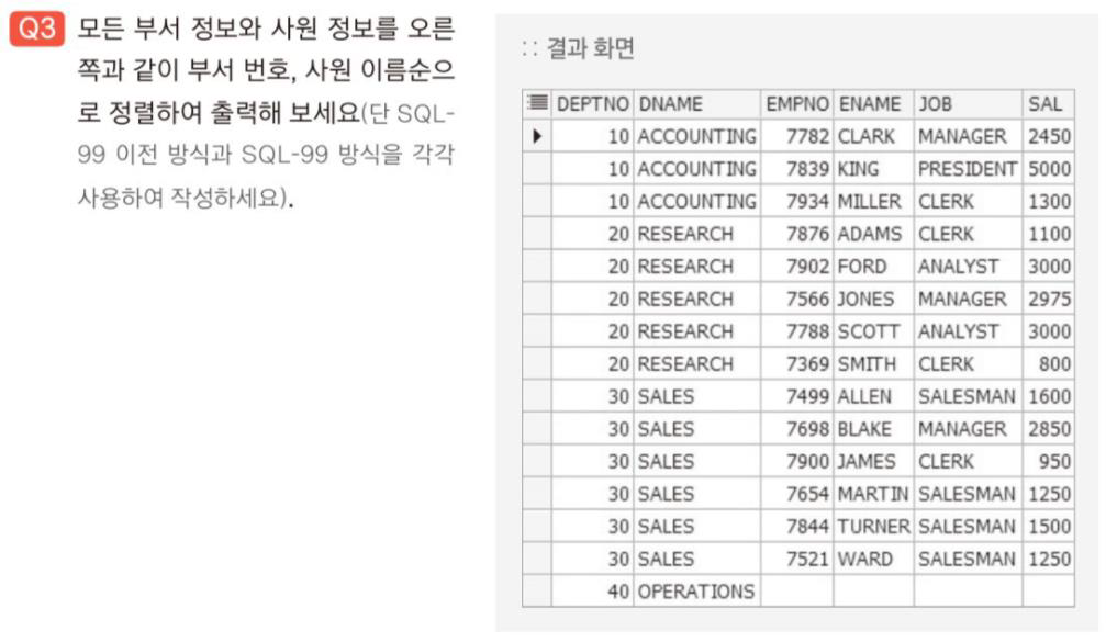 ORDER BY D.DEPTNO, E.ENAME; -- 결과에 맞게 정렬