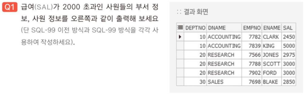 where E.DEPTNO = D.DEPTNO and SAL > 2000 -- 이 조인 구문이 이미 DEPTNO를 완성한다!
