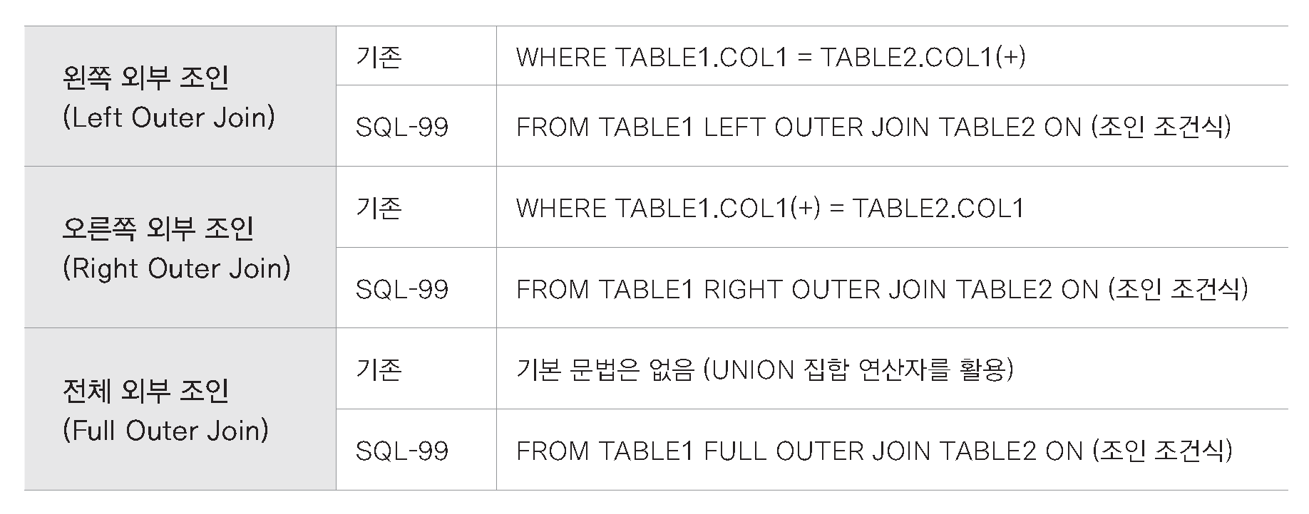 단 ORACLE에는 FULL JOIN 개념이 없다. 무조건 한 쪽 기준을 맞춰야 한다.
