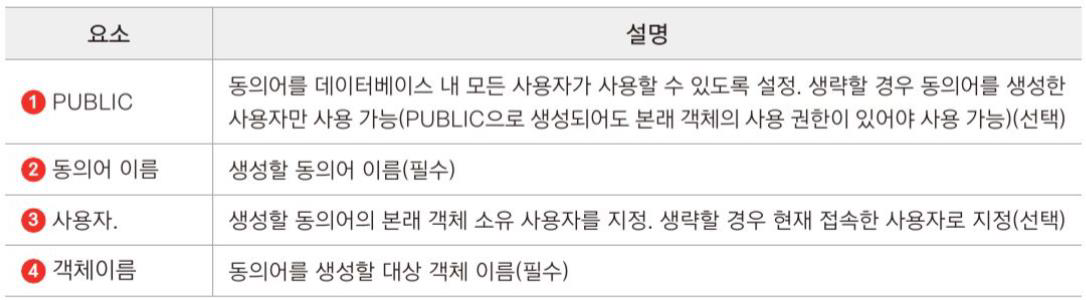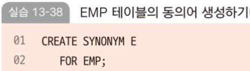 동의어: 테이블 이름을 숨기고자 할 때 주로 사용
