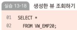 VIEW = SELECT문을 저장한 객체