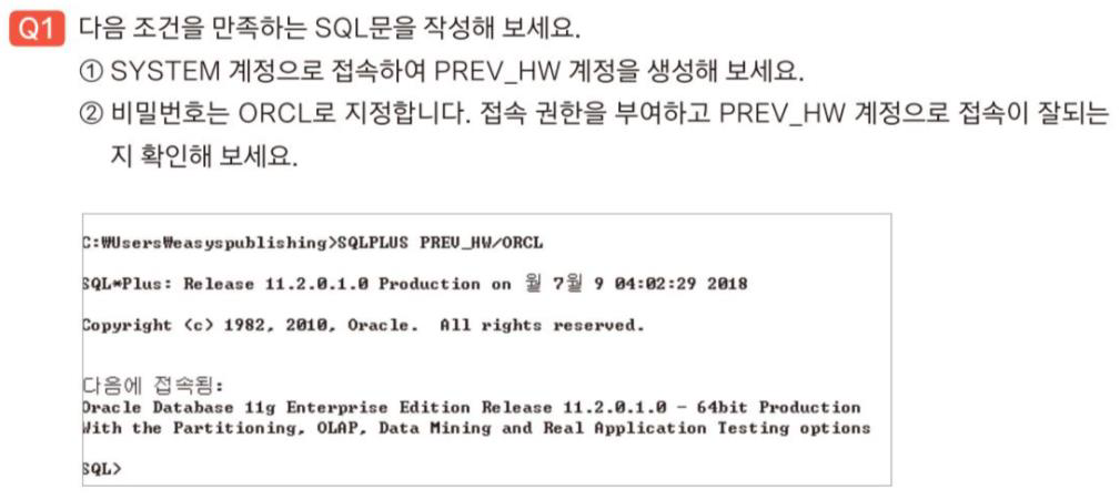 GRANT CREATE SESSION TO PREV_HW; -- 권한 부여