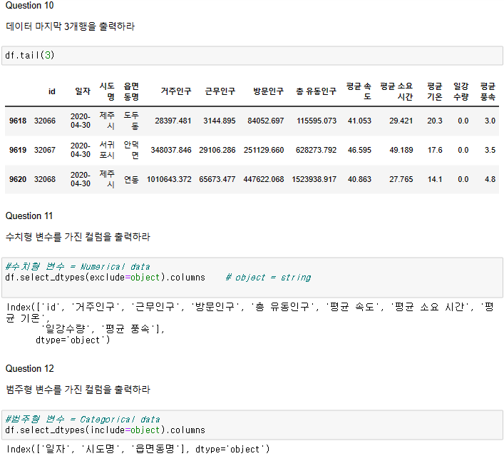 11번 12번 문제의 select_dtypes(??clude=object).columns <- 에 대해서 알아두자.