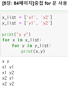 중첩 for는 리스트 안 리스트 추출할때 씀