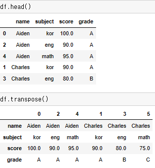 그냥 일괄적으로 행<->열 바꾸는 함수는 transpose()를 이용한다. 선형대수가 생각나네?