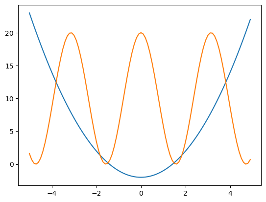 y2 = 20*np.cos(x)**2 # NumPy에서 cos()는 np.cos()으로 입력