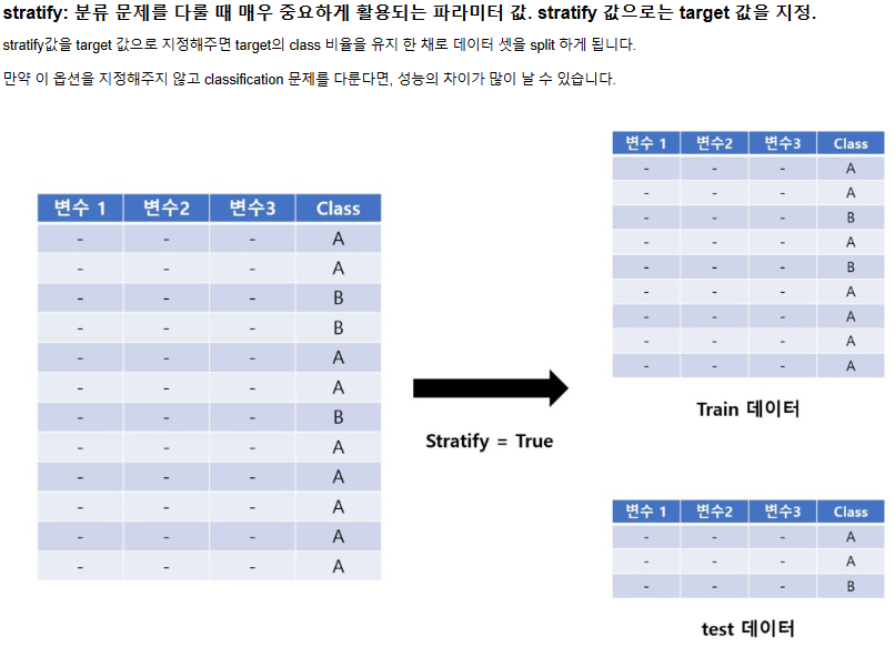 split함수에 data 입력 순서는 data -> target 순이다. (코드 참조)