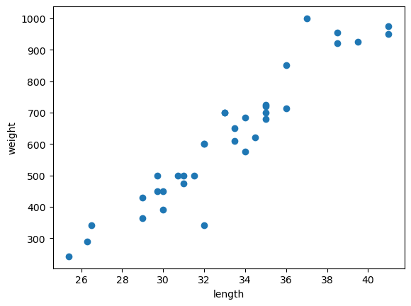 bream_length = [25.4, 26.3, 26.5, 29.0, 29.0, 29.7, 29.7, 30.0, 30.0, 30.7, 31.0, 31.0, 31.5, 32.0, 32.0, 32.0, 33.0, 33.0, 33.5, 33.5, 34.0, 34.0, 34.5, 35.0, 35.0, 35.0, 35.0, 36.0, 36.0, 37.0, 38.5, 38.5, 39.5, 41.0, 41.0]